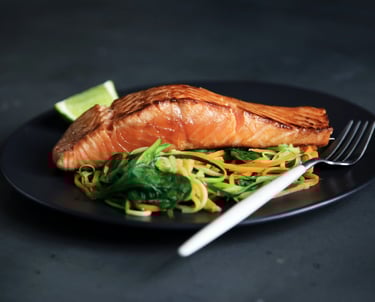 Achiote Sea Bass — seared fillet with roasted pineapple salsa and burnt lemon butter.